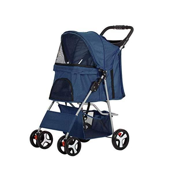 Overmont ペットカート 折りたたみ 多頭用 4輪軽量 安全装置付 ドッグカート 後輪ブレーキ機能 小型犬 中型犬 老 Pymr Go Th